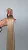 Achieve a naturally radiant look with this Rooted Bright Blonde single weft extension. The soft root creates a seamless, effortless transition into a bright blonde base, enhanced with subtle golden lowlights for gentle depth and warmth. Perfect for adding volume, length, and sun-kissed dimension, this extension delivers a polished, salon-quality finish that looks luminous from every angle.