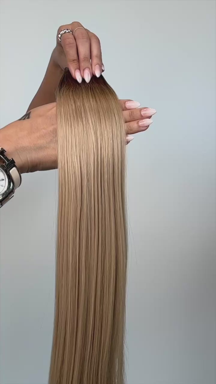 Experience effortless blending with this Rooted Neutral Blonde single weft extension. A soft, natural root melts into a balanced blonde tone that’s free from excess warmth or coolness, creating a true-to-life, salon-inspired finish. Designed for seamless integration, this shade enhances your style with added length, natural volume, and a polished, realistic blonde look that works beautifully across skin tones.