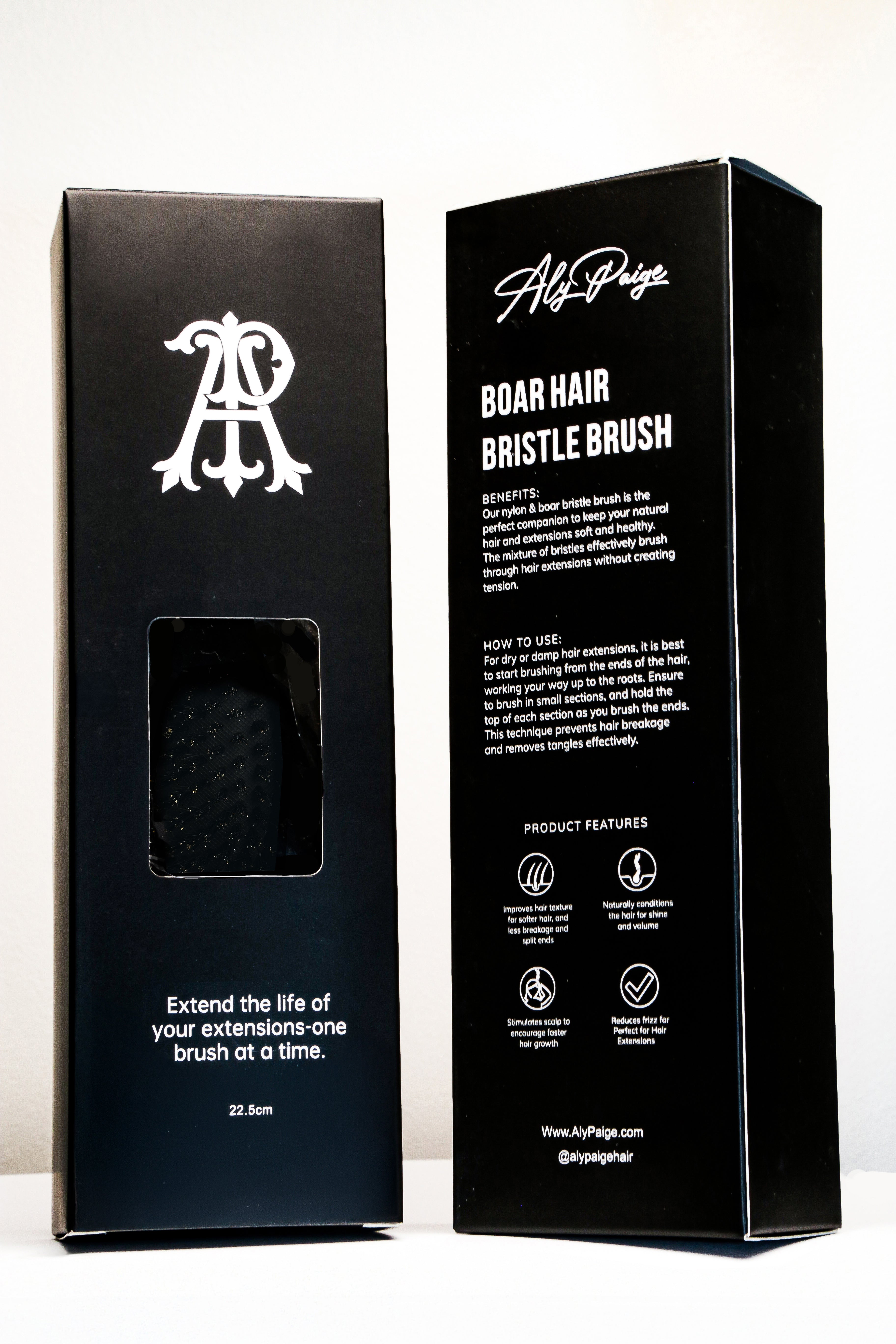 Our nylon & boar hair bristle brush is the perfect companion to keep your natural hair and extensions soft and healthy. The mixture of bristles effectively brush through hair extensions without creating tension.